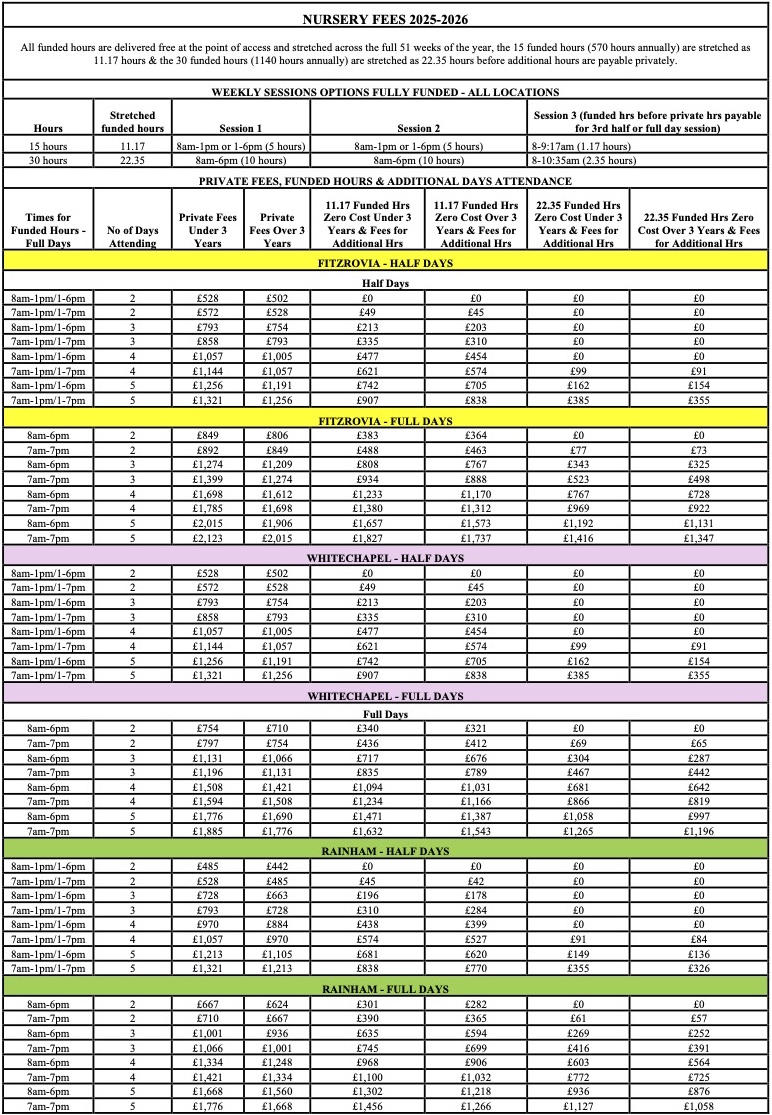 • where parents are using funded hours this will be applied in its entirety before private fees are payable